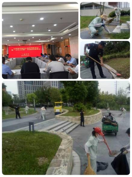 8月29日下午4時整,廣陵新城在管委會辦公大樓會議室,組織召開了各合作單位負責人參加的文明城市長效管理推介會,暨“全民大掃除”活動動員布置會。