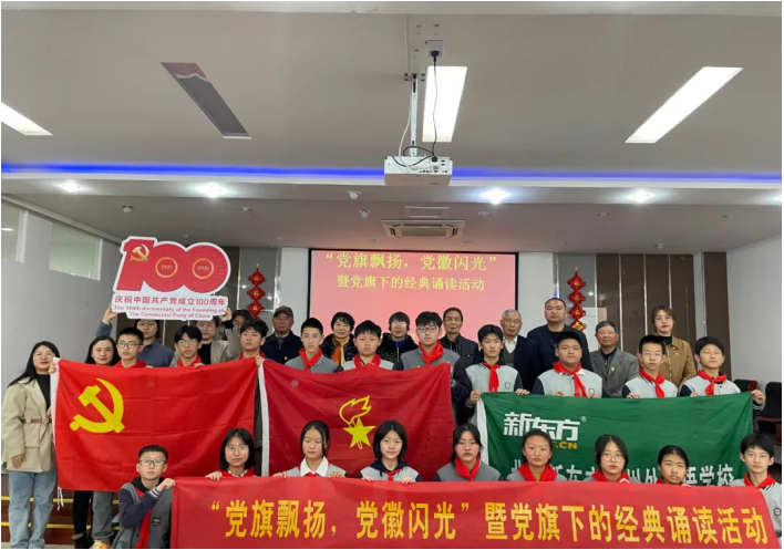 為教育和引導(dǎo)廣大黨員緬懷紅色崢嶸歲月,領(lǐng)略紅色文化魅力,傳承紅色永恒經(jīng)典,4月20日下午,天順花園社區(qū)黨總支和萬楊物業(yè)黨支部天順花園黨小組聯(lián)合北京新東方揚州外國語學(xué)校開展“黨旗飄揚,黨徽閃光”暨黨旗下的經(jīng)典誦讀活動。