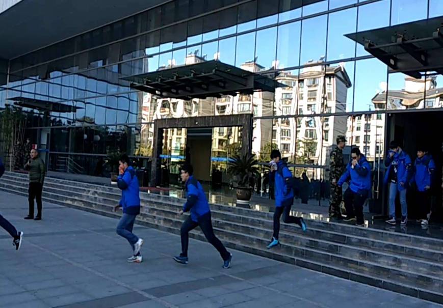 正在上課的師生們聽到警報聲后,教師第一時間組織學(xué)生有序疏散,告知學(xué)生不得乘坐電梯,下樓梯時不要慌張,不擁擠、用毛巾或棉衣,彎腰捂住口鼻,離開教室,從消防樓梯有序下樓。江蘇萬楊物業(yè)秩序維護隊長帶著2名隊員分別從兩邊的消防通道沖上樓,不停的問逃生的教師和學(xué)生:“教室里還有沒有學(xué)生了”。當萬楊秩序維護部隊長清場到5層時,有一個學(xué)生去廁所,聽到報警,電梯已被迫停,呆坐在教室里,走投無路,隊長趕緊讓該學(xué)生立即從消防樓梯下樓,到廣場。萬楊其他秩序維護員分別沖向各樓層,不停的提醒學(xué)生,樓梯上不能停留,注意不能擁擠,小心腳下,在不到五分鐘的時間內(nèi),全體師生安全撤離教室,到達安全地點。