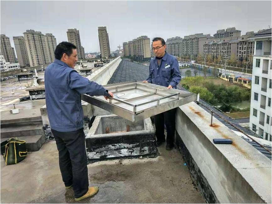 為確保實施方案萬無一失,萬楊物業(yè)高職校項目部將方案上報職能部門同意,并把這次排險任務(wù)作為一次高空墜落應(yīng)急演練,按照應(yīng)急預(yù)案工作流程進(jìn)行操作。幾名工程人員準(zhǔn)備好器材后,在項目經(jīng)理現(xiàn)場指揮下,登上宿舍樓天臺,僅用了十多分鐘時間,成功排除高空墜物。工程人員下來時,將天窗蓋慢慢復(fù)位并固定好,謹(jǐn)防再次發(fā)生類似情況。