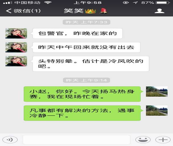 次日早晨7點(diǎn)33分,趙女士也通過微信向萬楊物業(yè)城市中央公園保安隊(duì)長包榮兵,無私幫助表示感謝!(廖家溝城市中央公園 韋長英)