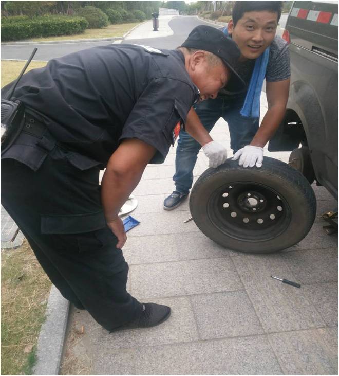 3點(diǎn)零6分,在園區(qū)保安全力幫助下,輪胎更換順利完成。車主方先生在駕車離園時(shí),對(duì)園區(qū)物業(yè)保安的無(wú)私幫助連聲致謝。ㄈf(wàn)楊物業(yè)廖家溝城市中央公園 韋長(zhǎng)英)