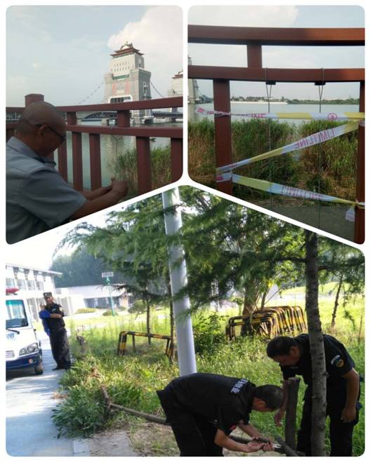 位于朱家河閘站東側(cè)綠化保護(hù)隔離帶,是當(dāng)期亮化工程改造和監(jiān)控系統(tǒng)升級,機(jī)械作業(yè)破損的,新萬福大橋南側(cè)廖家溝沿邊安全防護(hù)欄風(fēng)化斷落,帶來了潛在的安全隱患,類似問題造成的人身傷害屢見報(bào)道。