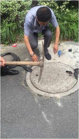工程人員接到服務(wù)中心派單后馬上去現(xiàn)場查看情況,發(fā)現(xiàn)有個井蓋確實松動了,通過現(xiàn)場查勘,發(fā)現(xiàn)只要找個輪胎的橡膠皮墊就能讓他唱無聲。說干就干,師傅們找來橡膠皮墊,掀開井蓋,壓在下面,一來可以保證井蓋和井圈能夠完全嚴絲合縫,二來可以緩沖減震。加裝好后,工程人員告訴楊大爺已經(jīng)弄好了,不會有響聲了。