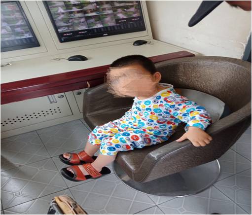 6月20日早上七點(diǎn)半左右,江蘇萬(wàn)楊物業(yè)聯(lián)誼南園聯(lián)康苑秩序維護(hù)員張師傅在小區(qū)北門轉(zhuǎn)盤附近發(fā)現(xiàn)一名三歲的小男孩,他一個(gè)人在快遞柜附近東張西望,旁邊也沒(méi)有家長(zhǎng)陪同,而且小朋友還穿著個(gè)大人的拖鞋,張師傅便上前進(jìn)行詢問(wèn),可孩子年齡太小了,只是哭著說(shuō)要找媽媽,于是張師傅便把孩子帶到北門門崗,第一時(shí)間報(bào)告給當(dāng)班班長(zhǎng)。