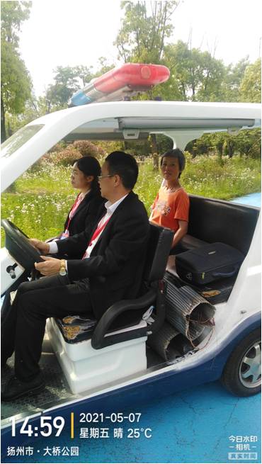 從語言交流看,該女士談話思路清晰,只說是天津人,出來徒步游行的,但身份及聯(lián)系方式不肯講。為放松該女士緊張情緒,了解更詳細信息,韋經理提出用巡邏車帶她到揚州人才公園游玩一下,該女士欣然同意了。在人才公園兒童樂園休閑卡座坐下后,韋經理與她嘮起了家常并與之互加了微信。初步了解,該女士叫董虎妹,48歲,丁克家庭,天津市人,護士出身,因身體原因離開了醫(yī)院;現(xiàn)在個人以徒步方式出來游玩,有時入住小旅館、有時就在開放式園區(qū)過道、廁所過夜……