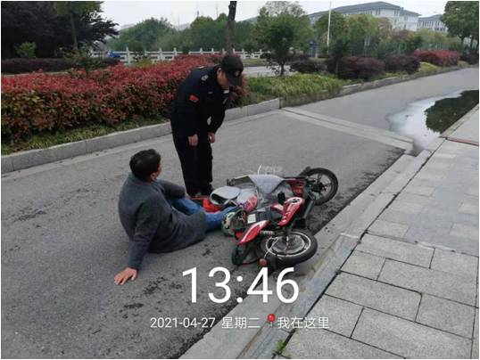 4月27日下午1點45分,在廖家溝城市中央公園蒙古包濱水路東側(cè)的非機(jī)動車道上,一名60多歲的女士騎電動車不小心摔倒在路邊……