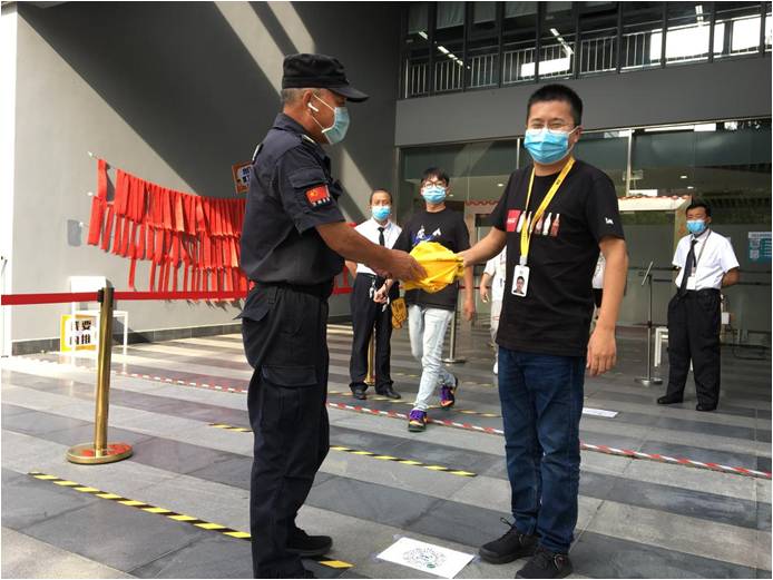 看著站在暴雨中堅守崗位的保安,很多員工都表示了關(guān)心和感謝,就在這個時候,有輛車慢慢的停了下來,從車窗里遞出了一把傘給在雨中的保安,并叮囑保安先遮雨再進(jìn)行掃碼工作。保安師傅非常感動,接過傘后又立刻投入到了緊張忙碌的檢查工作中去了。