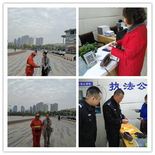 4月13日萬楊物業(yè)邗江道路明月湖路保潔員金太菊在保潔至京華城北門路段時(shí),路邊一只黑色的包引起了了她的注意。她打開后發(fā)現(xiàn)是一臺(tái)筆記本電腦。工作用的而且價(jià)格挺貴,這是他的第一感覺。失主肯定著急,她不能走遠(yuǎn),原地等待,直到她下班時(shí)間到了,仍不見失主過來,她沒有任何通訊方式,更不知如何處理,后通過班長聯(lián)系上項(xiàng)目負(fù)責(zé)人后,做出決定,將電腦交至對(duì)面的明月湖公園管理處,也是萬楊的另一個(gè)管理項(xiàng)目處。做好登記后她下班回家了。14日上午9:30左右,失主通過附近派出所,多方聯(lián)系后與項(xiàng)目負(fù)責(zé)人王經(jīng)理取得了聯(lián)系,隨后,在明月湖邊廣場(chǎng)與失主進(jìn)行核對(duì),無誤后,失主要求當(dāng)面感謝金大姐,感謝她的無私和不昧的精神。