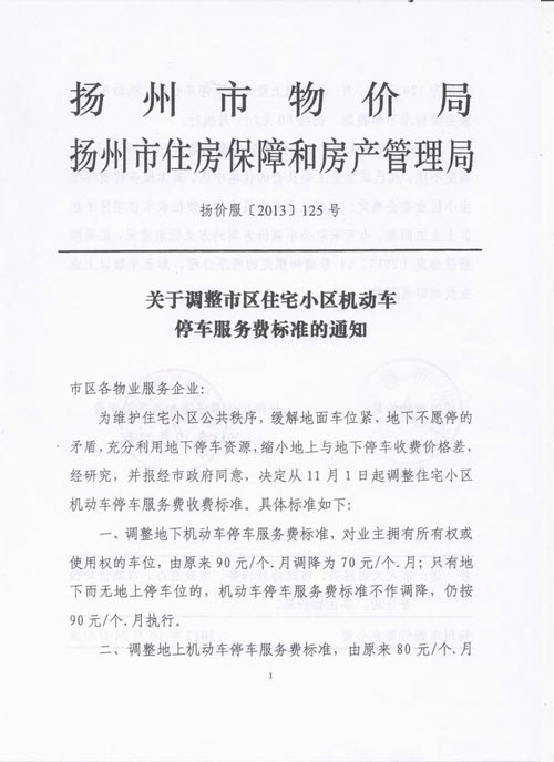 關(guān)于調(diào)整市區(qū)住宅機動車停車服務(wù)費標準的通知