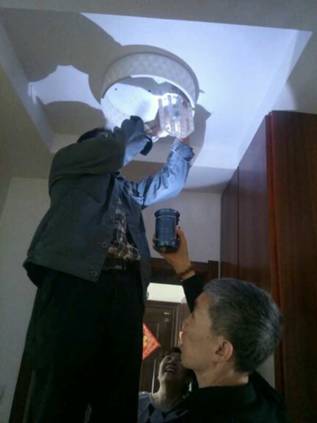 這燈是當(dāng)時(shí)房子裝修時(shí)候安裝的,裝修師傅早已沒(méi)了聯(lián)系,不知道找誰(shuí)幫他修理下;而自己家中的事物不包含在物業(yè)管理工作中,今天抱著試試看的心理來(lái)到物業(yè),想請(qǐng)物業(yè)的工程師傅去幫他修理下,管家小陳立馬叫來(lái)了趙工說(shuō)明了情況,趙工拿起工具包就和業(yè)主一起去了,因?yàn)檫@盞燈是塑料材質(zhì)比較脆,稍微大意就會(huì)破了,在仔細(xì)地觀察過(guò)后,趙工拿定了安裝的方案。這個(gè)拆卸安裝的過(guò)程,都必須小心翼翼,過(guò)了差不多半個(gè)小時(shí)的忙碌,吊燈終于亮了,而趙工的額頭,也因?yàn)槌掷m(xù)的緊張小心,冒出了細(xì)小的汗珠。