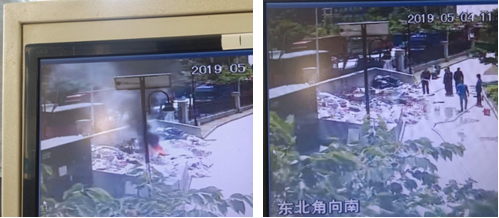 5月4日 上午11點左右,聯(lián)誼南園聯(lián)福苑物業(yè)服務中心接到監(jiān)控室的對講機呼叫,原來,隊員從監(jiān)控中發(fā)現(xiàn)5號樓旁邊的建筑垃圾臨時堆放池中,已有濃煙散發(fā)出來,垃圾池中有可燃物在燃燒并迅速蔓延,物業(yè)李經(jīng)理立即到現(xiàn)場,并通知在崗秩序人員請求支援,并從門崗和著火現(xiàn)場附近樓棟找來滅火器滅火,前后用掉近十只滅火器才將火勢得以控制。同時通知趕來支援的隊員尋找就近消火栓并接上水帶打開水閥,在短短5分鐘內(nèi)將火完全撲滅,避免了一場安全事故。