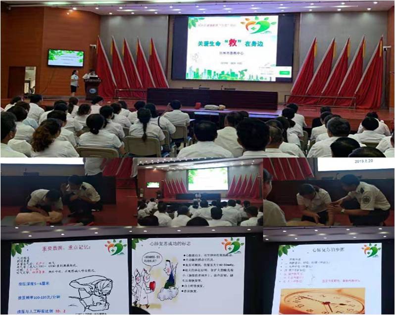 8月20日下午兩點(diǎn)講座開始,急救中心的專家汪茂勝醫(yī)生用專業(yè)PPT的展示形式,從最基本的正確撥打急救電話和急救的定義、目的以及急救的一般注意事項(xiàng)開始講解,并且用身邊實(shí)際發(fā)生的案例分享對(duì)觸電急救、化學(xué)危險(xiǎn)品傷害急救(1.氣體中毒、2.毒物灼傷、3.口服非腐蝕性毒物)、機(jī)械傷害急救、燒傷急救、中暑急救、溺水急救、氣道梗阻急救、醉酒急救、鼻出血急救、魚卡喉急救、跌傷急救、心肺復(fù)蘇、AED以及海姆立刻急救法等均作出了詳細(xì)講解。