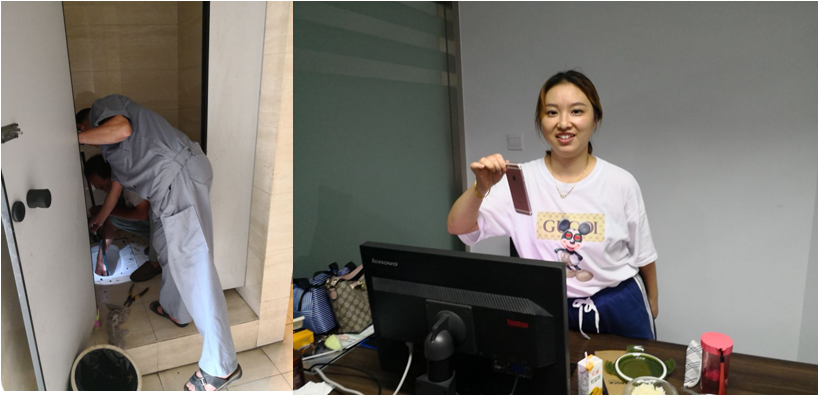 2018年9月30日中午剛剛吃完午飯,滴鈴鈴……萬(wàn)楊物業(yè)華遠(yuǎn)國(guó)際大廈物業(yè)管理處辦公室的電話就響了!拔飿I(yè)嗎?快幫幫忙,我眼巴巴的看著手機(jī)掉廁所蹲坑里面啦,快幫我想想辦法”。接完電話客服立即趕往現(xiàn)場(chǎng),業(yè)主焦急萬(wàn)分的對(duì)客服人員說(shuō)她手機(jī)里面有很多重要的信息,丟了麻煩就大了,請(qǐng)物業(yè)無(wú)論如何想辦法幫她把手機(jī)拿上來(lái)?头藛T邊安慰業(yè)主邊打電話給工程師傅,跟他說(shuō)明情況,并要他帶一些工具到現(xiàn)場(chǎng)。一會(huì)兒功夫,工程侯師傅就到了,仔細(xì)看了看,用長(zhǎng)桿子伸下去試探,判斷手機(jī)掉在了很深的彎口那里,但要想拿上來(lái)著實(shí)有難度。侯師傅想伸手下去拿,但是根本夠不著。然后用鉤子嘗試著能不能鉤上來(lái),結(jié)果手機(jī)一動(dòng)不動(dòng),然后換一種方法在棍子前面套個(gè)圈看能不能將手機(jī)拎上來(lái),這個(gè)方法還是不行,真的是太難了。業(yè)主在旁邊看著這也不行那也不行急的都要哭了,請(qǐng)師傅一定要想辦法幫幫忙。