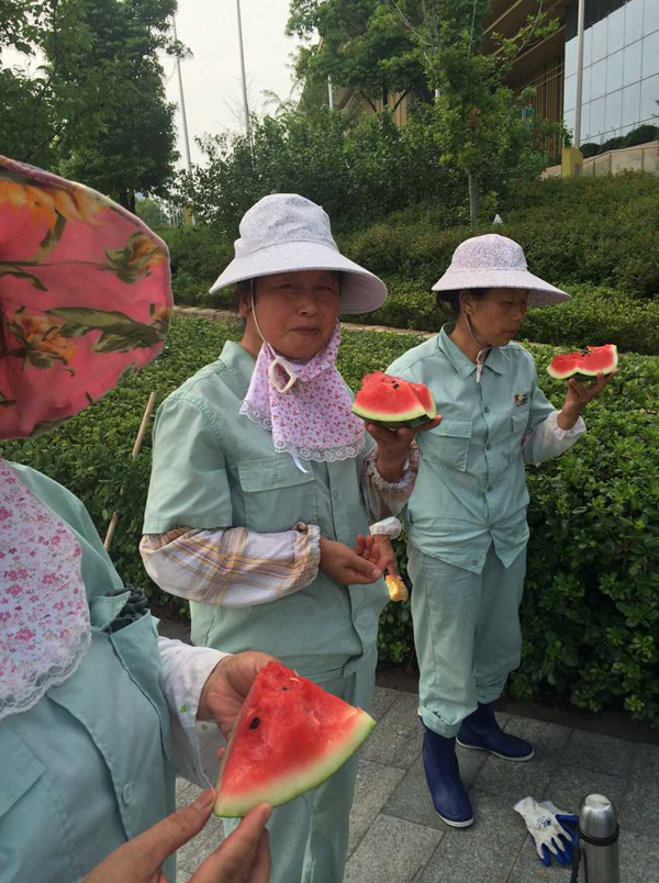 夏季高溫酷熱,從7月開始,最高氣溫經(jīng)常達(dá)到35℃以上。萬楊物業(yè)服務(wù)中保潔、秩序維護(hù)、工程維修、綠化養(yǎng)護(hù)等一線員工戶外工作時間較長,為保證服務(wù)質(zhì)量,關(guān)心員工健康,根據(jù)中心《關(guān)于做好高溫天氣防暑降溫工作的通知》要求,結(jié)合往年使用情況及項目實際需求,公司在6月份就購置了一批防暑物品,包括十滴水、龍虎人丹、清涼油、毛巾、香皂、大麥茶等,第一時間發(fā)放到各項目處,并要求督促員工堅持服務(wù)人丹,每天給員工泡大麥茶,項目處堅持送茶到崗服務(wù),確保員工充分補(bǔ)充水份,條件允許的項目還定期購買西瓜、冷飲,各種措施均得到了員工的廣泛好評。